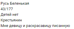 "15. 189. 35. 2." - Возраст, рост, вес, длина пениса в эрегированном состоянии на взгляд хозяина.