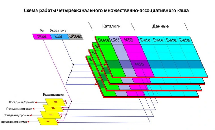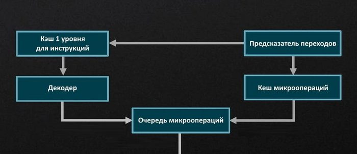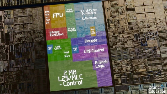 Если заглянуть в любое ядро, мы увидим, что оно состоит из различных частей — блоков выборки и декодеров, целочисленной части, блока вычислений с плавающей запятой, блоков загрузки/выгрузки, кэша первого и второго уровня. На каждую из них приходится несколько миллионов транзисторов.