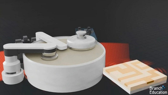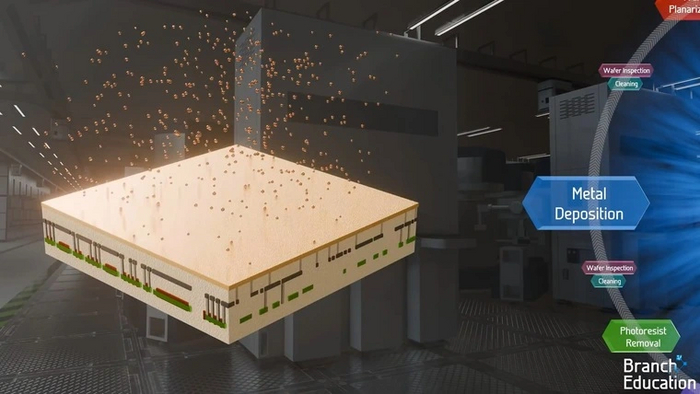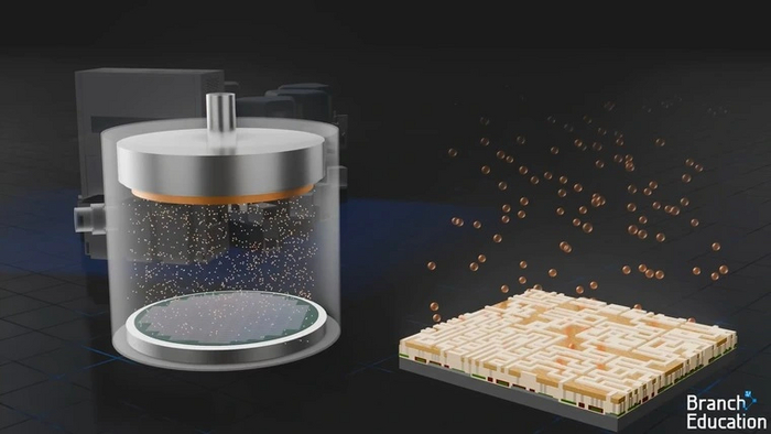 В центре установки для осаждения находится главная камера для пластин. К ее краям прикреплены дополнительные камеры, в каждой из которых происходит нанесение одной разновидности материала. Например, металлов — алюминия, меди, золота, вольфрама, никеля или тантала.
