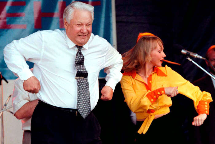 Политик отличался ярким, властным и порой непредсказуемым характером. Он свободно чувствовал себя на публике, порой шокируя присутствующих. Нередко такие поступки провоцировало пьянство, которому был подвержен Ельцин. Оно, считают биографы, привело к смешным, а порой и нелепым событиям, случавшимся с главой России. То он загадочным образом упал в реку с моста, то пытался дирижировать оркестром в Германии, а так же умудрился на глазах у всего мира справить малую нужду на шасси самолета.