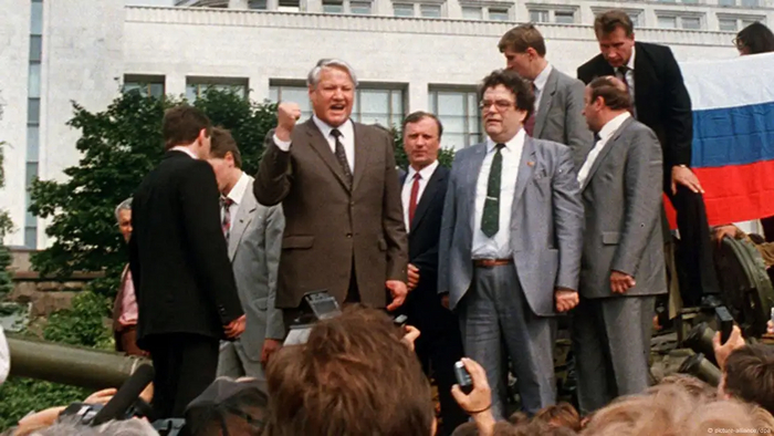 19 августа 1991 года в СССР произошла попытка государственного переворота, известная сегодня как «августовский путч». Михаила Горбачева отстранили, а власть в свои руки взял Государственный комитет по чрезвычайному положению. Тогда Ельцин встал во главе лиц, противоборствующих незаконно захватившим бразды правления, принял решительные действия и разрушил планы ГКЧП. На память об этом событии сохранились фото и видео, где деятель произносит речь, стоя на танке.