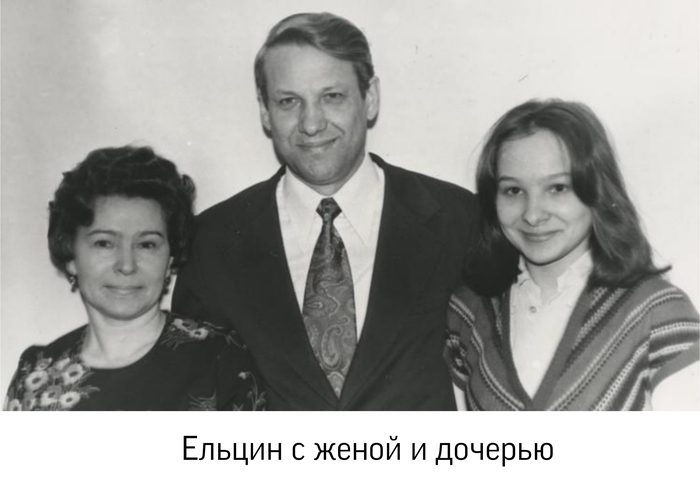 Свадьба четы Ельциных состоялась в Доме колхозника в Верхней Исети в 1956 году, а через год семья пополнилась дочерью Еленой. Спустя три года детей у Бориса и Наины стало двое, у них появилась младшая наследница Татьяна.
