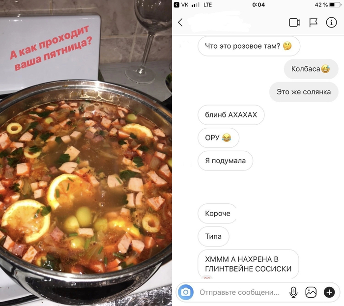 И всё. Дальше Сирожа молчал. Рот занят, видимо. Или я очень сильно угадал про его предмет... "гардероба", и он срочно ломанулся проверять его наличие, ну и застрял там (Как-то двусмысленно звучит.) (Видимо, стразы шершавые... застряло...)