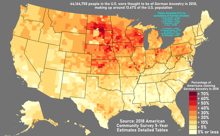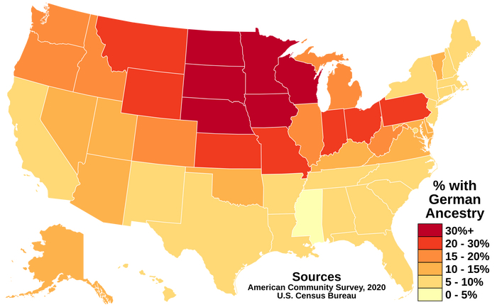 Процент людей с немецкой родословной