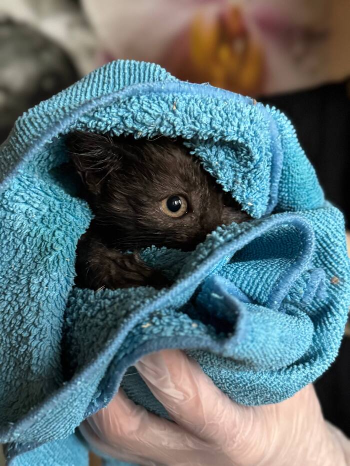 Мы решили выходить котят. Был уже сентябрь, начинало холодать, а они были совсем крошечными. Не ели, не пили. С неделю мы кое-как продержали их дома, а потом отдали тёще. У неё живут два кота, и она окружила котят заботой. К сожалению, один котёнок не выжил. Осталась одна девочка.