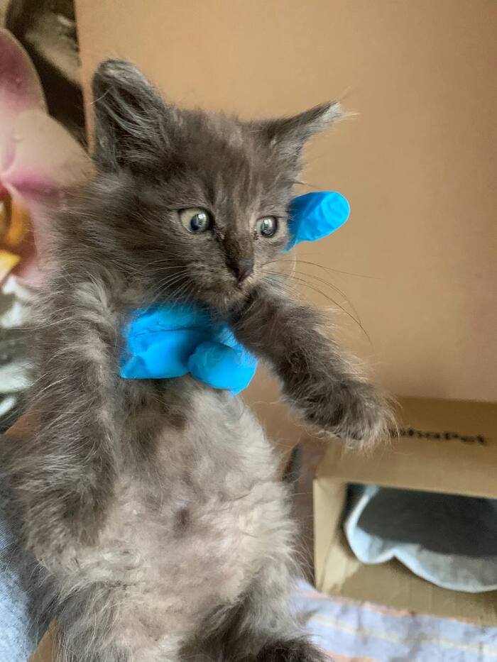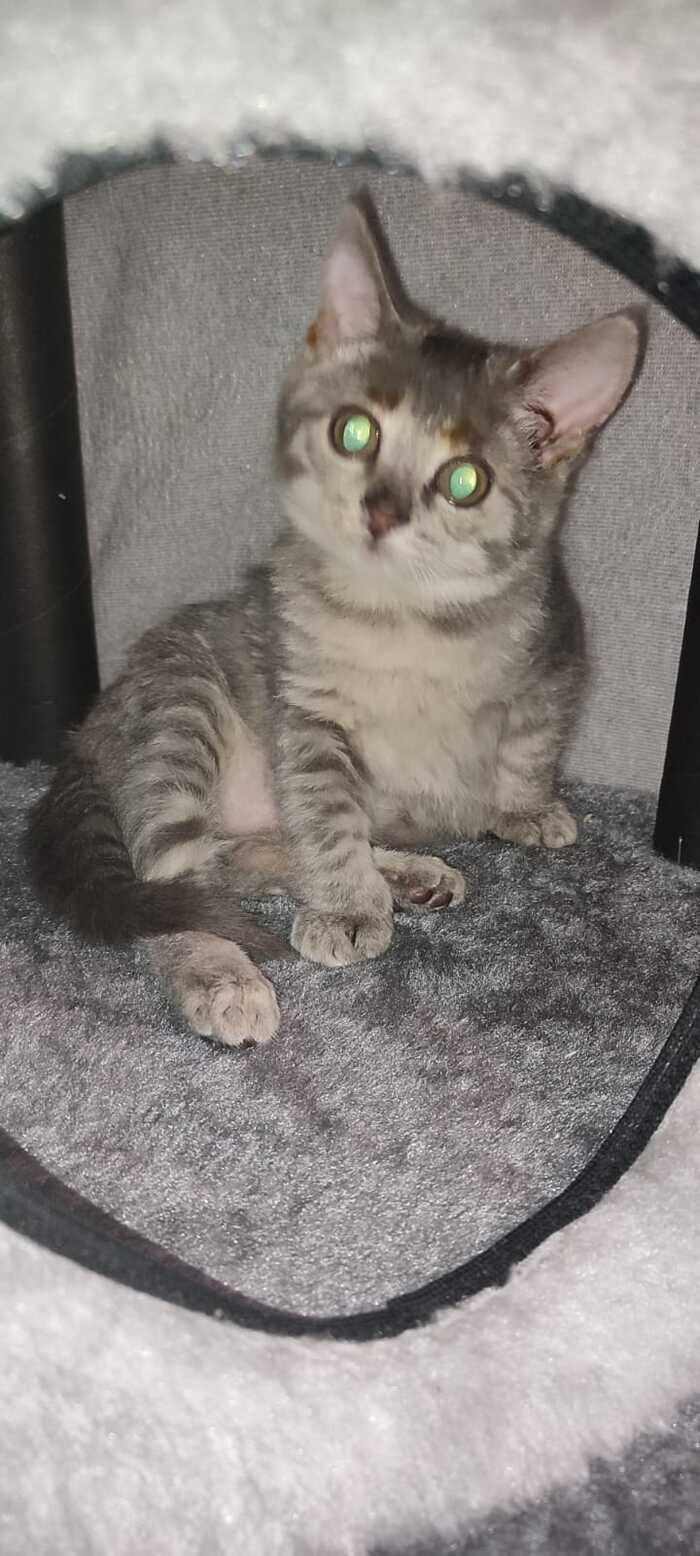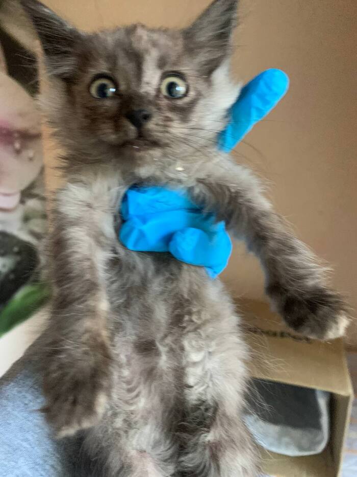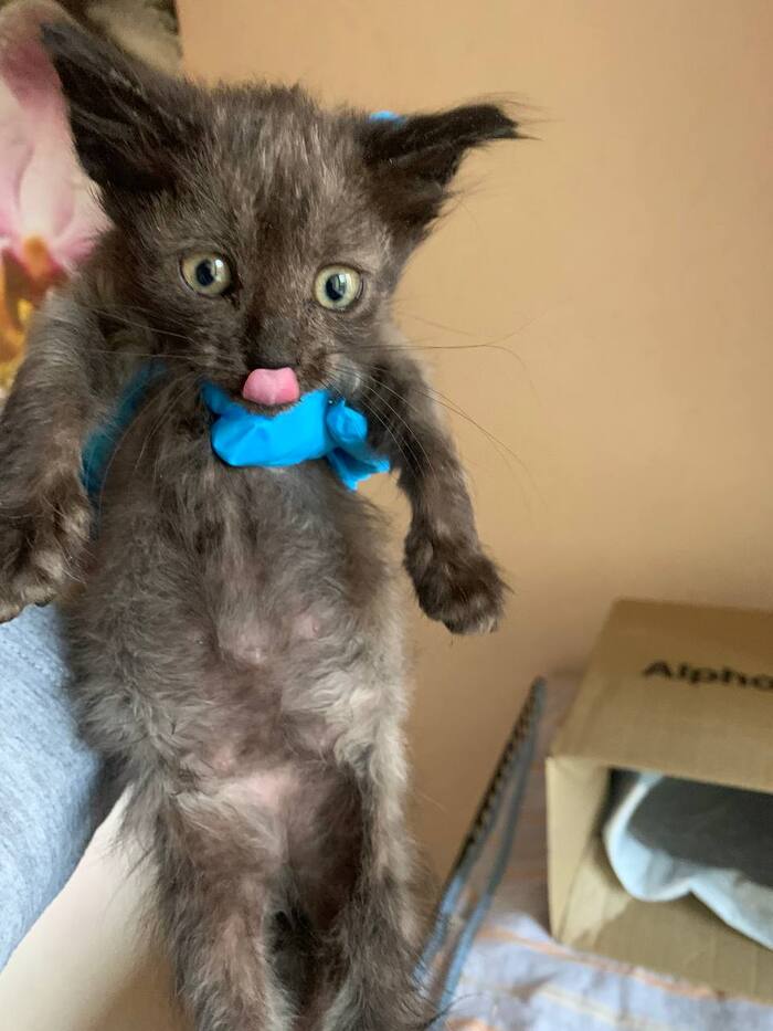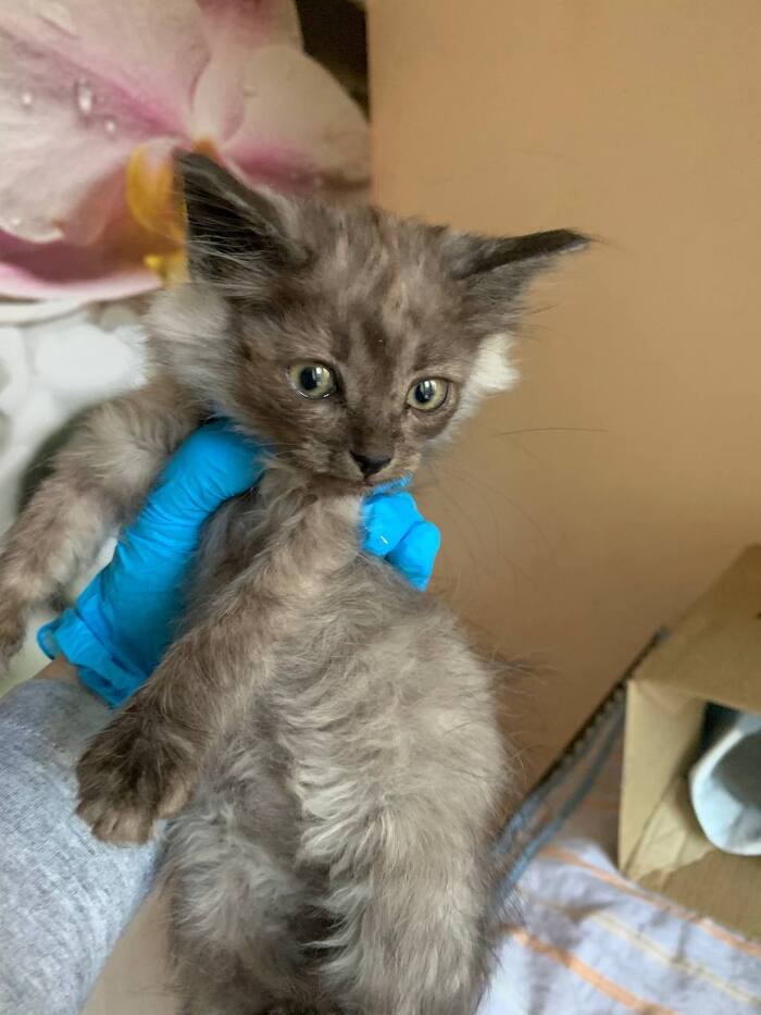 Она росла, крепла, начала играть и донимать взрослых котов. И тут жена, тёща и коты стали покрываться лишаём. Просветили лампой Вуда — и оказалось, что котёнок вся светится, с колониями лишая по всему телу: лапы, живот, нос, уши, хвост, спина.