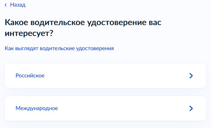 Здесь необходимо выбрать пункт, который наиболее вам подходит. Мы продолжим инструкцию с российским водительским удостоверением. Нажимаем «Российское».