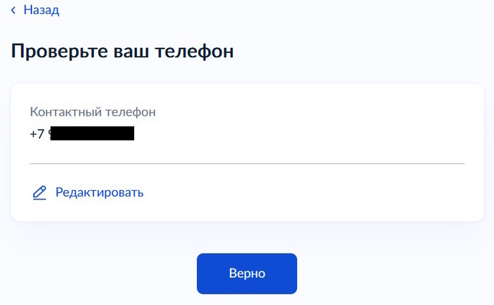 Далее проверяете правильность указания вашего контактного телефона и вашей электронной почты. При необходимости их можно отредактировать. Нажимаем «Верно».