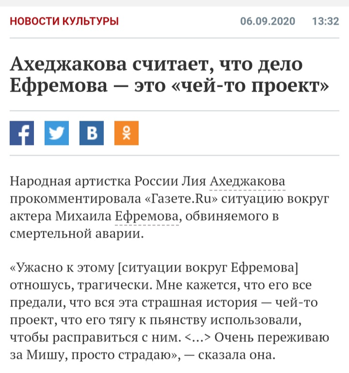 В общем хочется верить, что большинство этих "заступников" оступились по незнанию. Ведь не может такого быть, что замечательные артисты вдруг перестали отличать добро от зла. К Лии Ахеджаковой это не относится.