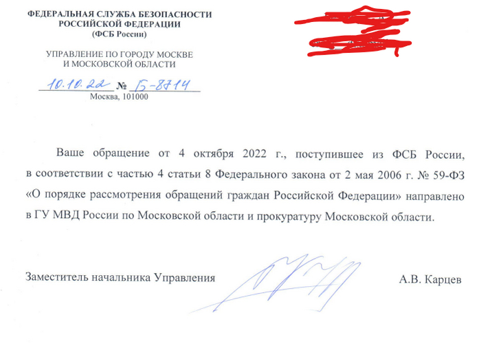 Решено написать заявления в МВД и ФСБ. В итоге: