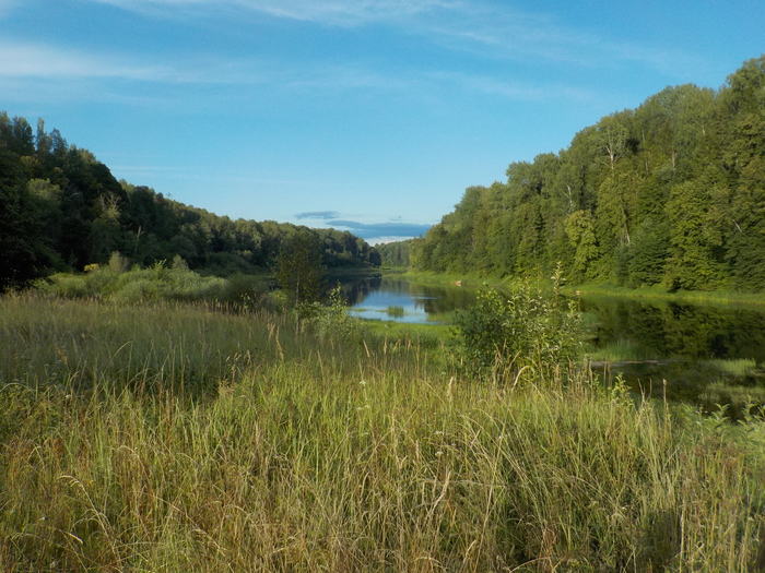Стоянок на этом участке реки - крайне мало. Это – не Карелия. Лиственные леса, крутые и высокие берега, поросшие высокой травой. Часто попадаются настоящие обрывы высотой до 20 метров.
