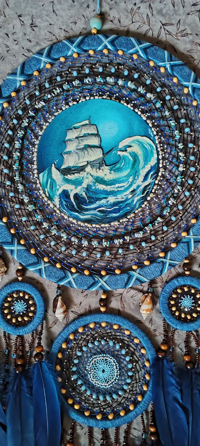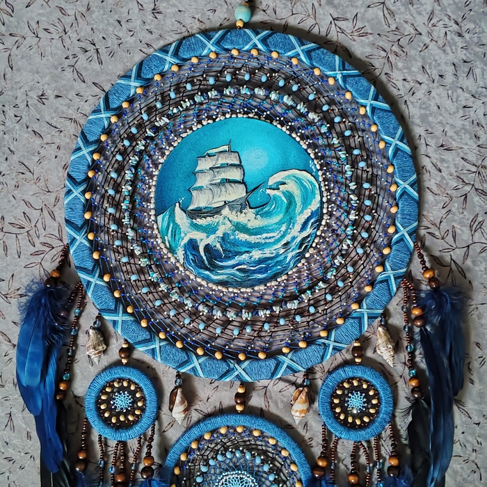 Как вы поняли, это предыстория к новому ловцу снов. Изначально я хотела сплести ловец с морским маяком, как уже делала не раз, но что-то пошло не так.