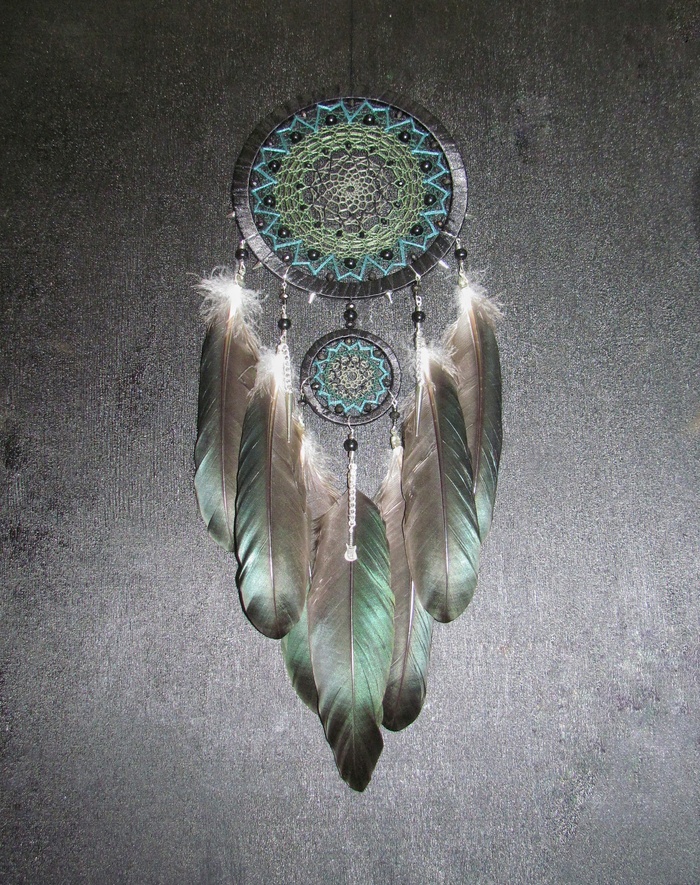 А вот фото со вспышкой. Тут видно все детали плетения и красивый блеск перьев, но фото засвечено(