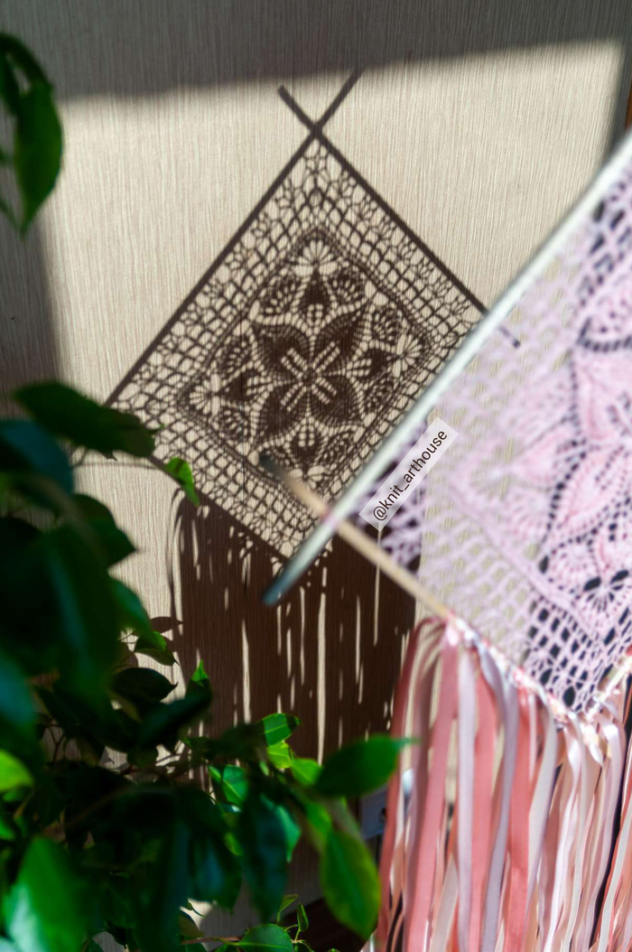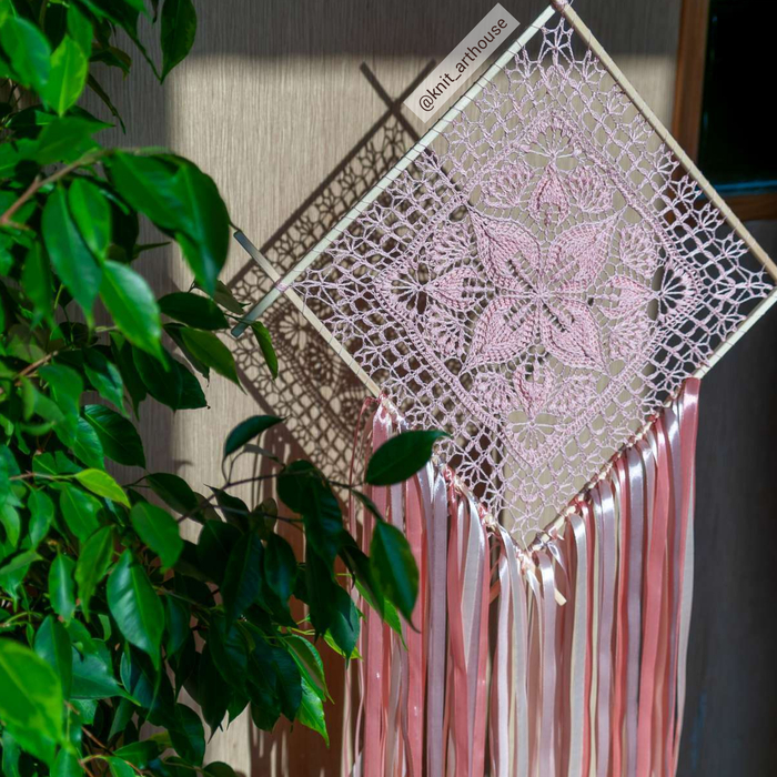 Можно добавлять дополнительно ленты, фантазийную пряжу, бусины, перья. Можно ничего не добавлять и просто оставить в виде панно на стену.