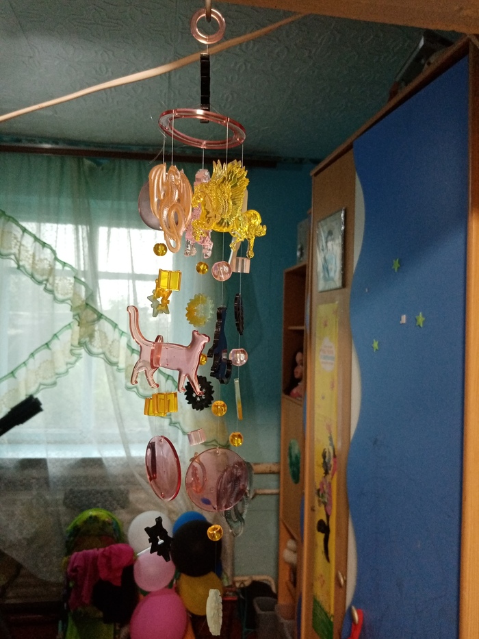 Только что доделала серебристый ловец солнца. Нарядный получился, весь в цепочках - звенит и переливается) весь балкон мне солнечными зайчиками заселил)