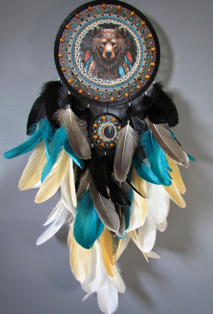 Я плету из этого бисера листья и использую их для вот таких ловцов. В таком лесу сначала поселился светящийся Олень. Про него уже рассказывала - Хранитель света