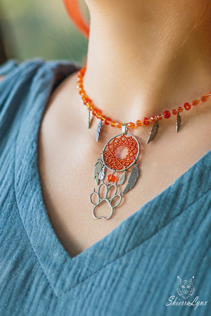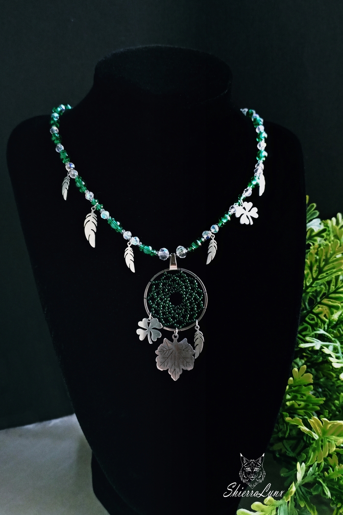 Обратите внимание на розовые голографические бусины - они мерцают и переливаются всеми цветами радуги) Они долго ждали своего часа и идеально вписались в концепцию ловца)