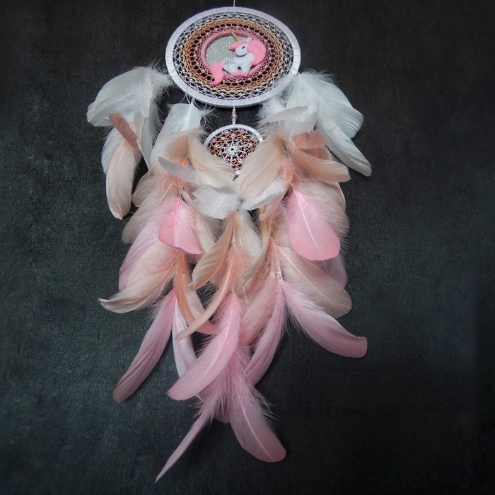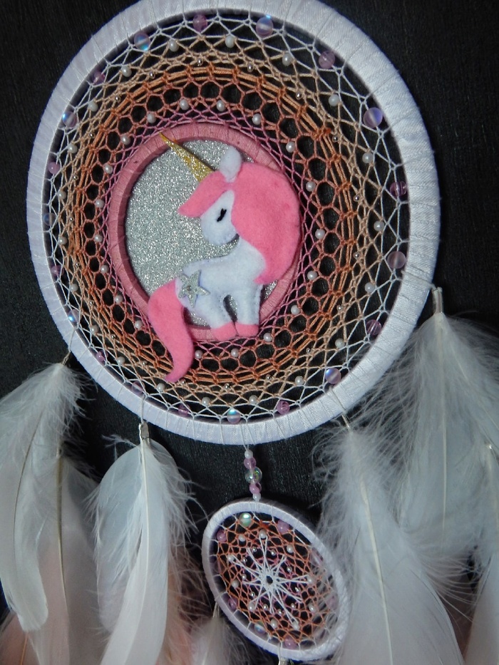 Для создания этого ловца мне пришлось вспомнить навыки кройки и шитья, которым меня учили в школе) Когда меня попросили поместить в центр ловца единорога, я сразу решила, что он будет именно таким)