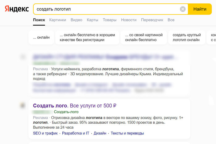 Идём в Яндекс и набираем самый популярный целевой запрос «создать логотип»