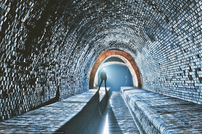 Наглядная иллюстрация, что такое «типовой» тоннель. Две фотографии снизу — это 2 разных тоннеля. Один принадлежит реке Ясень, второй относится к системе городской канализации.