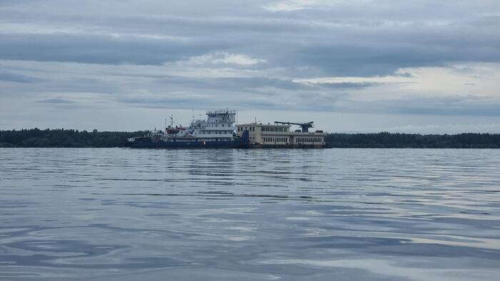 Ощутив решительный перелом в погодных условиях и убедившись, что очередные осадки не загонят меня в палатку, я энергично принялся сворачивать лагерь. Пока я занимался окончательными приготовлениями, мимо, величественно рассекая воду, проплыл большой круизный теплоход.