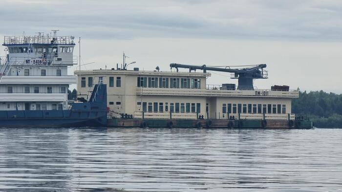 • Речные чудеса: Встретил буксир, толкающий перед собой что-то похожее на большое здание.