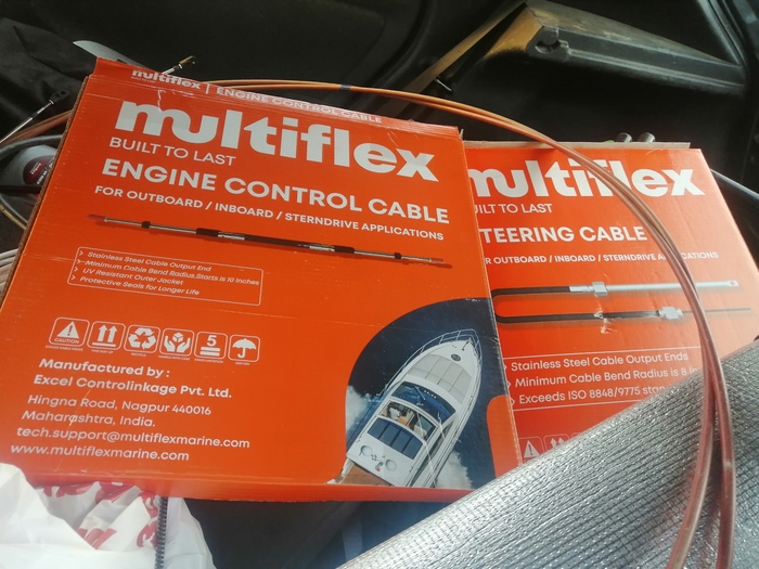 Далее случилась неприятность о которой мы вообще не думали. Троса управления мотором оказались слишком длинные (( на метра 1.5 примерно. Не, можно было поставить и так, но эти огромные петли, по которым придётся ходить и которые постоянно будут мешаться под ногами в наши планы не входили. Поэтому срипя сердцем и выгребая последние копейки были приобретены новые троса