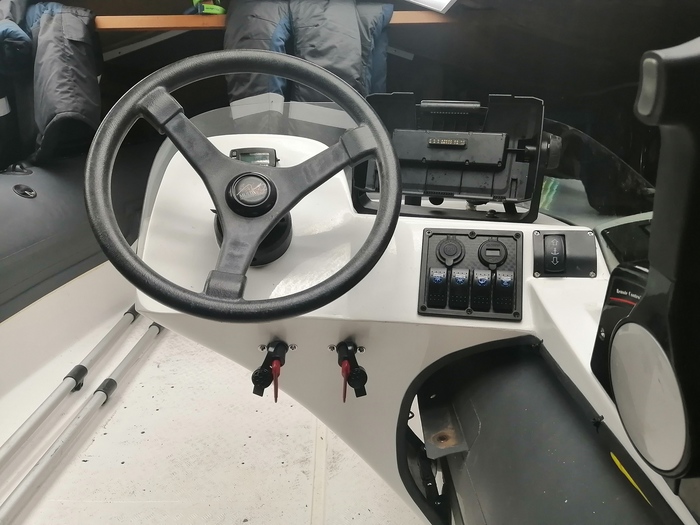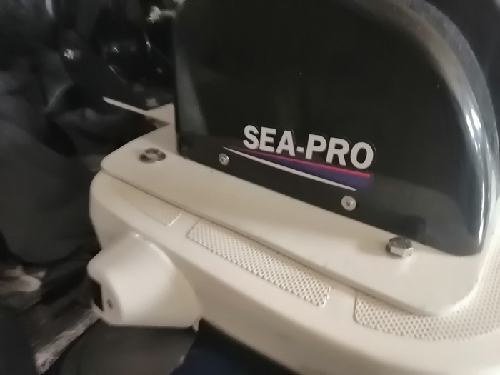 За рулём прячется тахометр с счётчиком мото часов. Большой прямоугольник-стойка эхолота. Эхолот гармин эхомап 92 св+. Сам прибор снят-там функция быстро съёма.