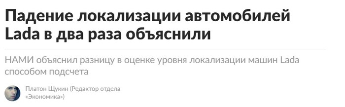 Свежие данные от НАМИ, подконтрольного Минпромторгу института, неожиданно вскрыли реальные показатели локализации. Не те, о которых бодро говорят на совещаниях, а те, которые есть по факту. Максимум показала "народная" Lada Granta — 45,7%. И это лучшая цифра. Для понимания: десять лет назад у неё было 53%. То есть, вместо того чтобы двигаться вперёд, результат стал хуже. А ведь не так давно тов. Соколов рапортовал о девяноста процентах локализации. Сколько там было иллюзий, а сколько — попытки выдать желаемое за действительное, можно только догадываться.