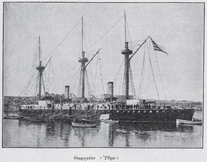 Быстроходный транспорт "Алфейос I" и броненосец греческого флота "Гидра", участвовавшие в высадке десанта на Крит: