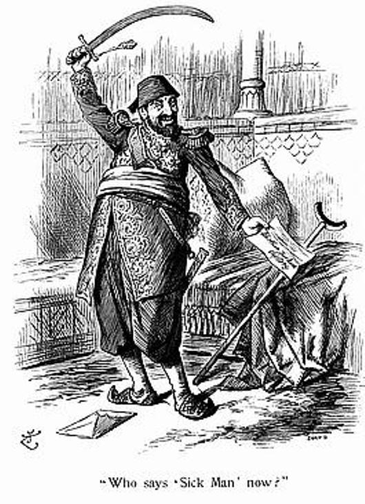 Европейская карикатура на султана Абдул-Хамида II после победы над греками: "Ну давайте, кто смелый, назовите меня еще раз "больным человеком Европы"!"