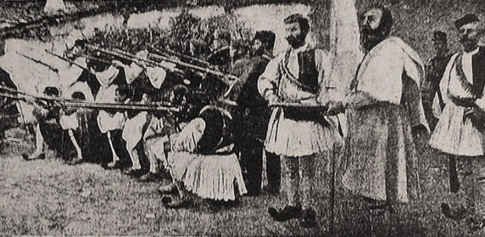 24 марта греки развернули повстанческие действия и на Балканском полуострове: 2,6 тыс. партизан вторглись на османскую территорию в Фессалии. На фотоснимке - один из таких отрядов: