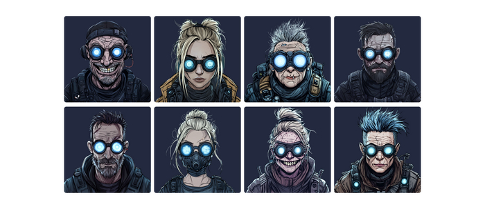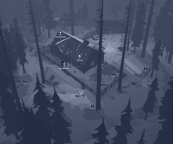 Ну тут картинки карт, давайте про карты. Мы обновили все карты, и теперь они выглядят не так убого, как раньше. Всякие там разрушенные пригороды, леса, шахты — всё это стало более чётким и интересным. Плюс, мы набросали кучу уникальных локаций, где можно найти всякие полезные штуки и наткнуться на местных жителей, или, что чаще, на тех, кто этими жителями только прикидывается. Половину нарисовали, другую половину в нейронках нагенерили. Ну а чё, век такой настал... не судите. Как выяснилось нагенерить нужную картинку в нужном стиле, тот ещё квест...