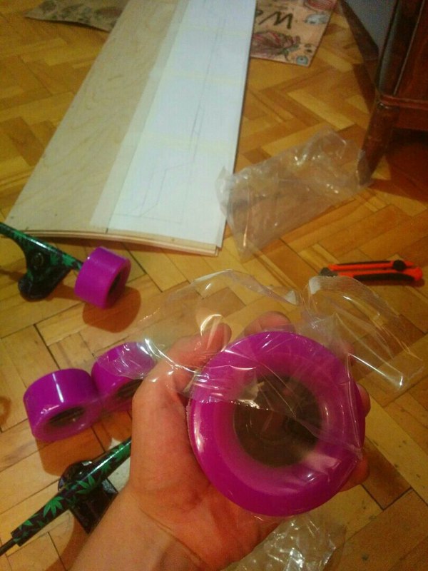 Доска получилась нормальной, вблизи, конечно, заметно, что это колхоз, а не фабричное изделие, но зато я получил классный опыт в работе по дереву. Едется и рулится прекрасно, сам процесс катания мне понравился.