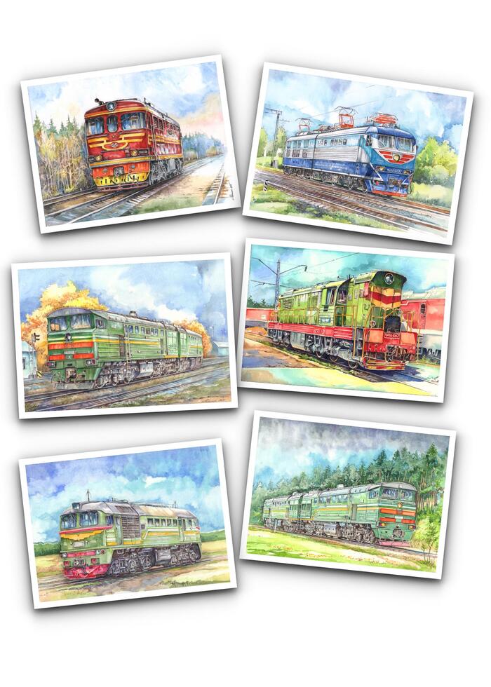В продажу поступили наборы открыток с работами 2024-2025 годов.- "Паровозы", "Железная дорога", "Трамваи".