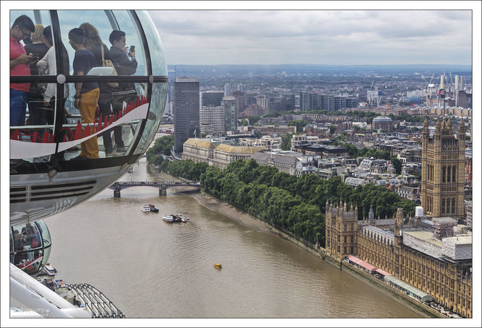 В одну капсулу помещается до 25 человек, но под завязку заполняют не всегда. С нами вместе в капсулу зашел… гарем. Во время вращения, их общий муж перефотографировался с каждой из жен по отдельности, а потом стал делать селфи на фоне Вестминстерского дворца и Биг Бена. Гарем в этот момент скромно столпился в уголке.