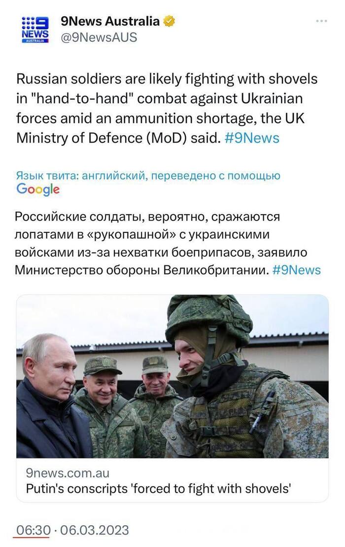 Автстралийская газета в 6:30: — Русским приходится воевать лопатами!