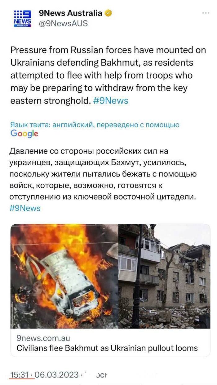 Та же австралийская газета в 15:31: — Украинцам придётся отступить!
