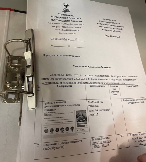 Судя по бумагам, в отчёты попадали не только страницы с наркотиками, но и группы, в которых «пропагандируется аморальное поведение» — например, группы про вписки.