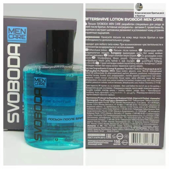 Тоже недорогой отечественный продукт. Без спирта. Цена до 200₽. Лосьон показался плохо впитываемым, а вот бальзам впитывается моментально. Нет ни плетки, ни сильного увлажнения, ничего. Этим мне бальзам и понравился. Его нанес и через пару минут следов на коже не осталось. Это как пришел в магазин, выбрал товар без консультанта, молча оплатил на кассе и понимаешь, что лицо человека на кассе ты больше никогда не увидишь. Хорошо, когда не нужно ни сушить кожу, ни сильно увлажнять. Запах у этой марки своеобразный. Легкий, ненавязчивый, быстро выветривается, но химический. Такое чувство, что побрызгал лицо средством для очистки монитора. Но запах нестойкий, не будет перебивать запах туалетной воды.
