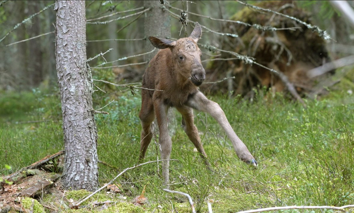 Неожиданная встреча с лосями в лесу. Отстреливалась из-за дерева