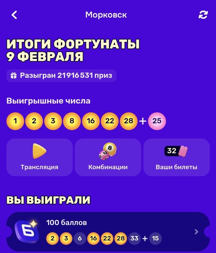 Хочу сказать сразу, в чепуху с выигрышем не верил изначально , для тех кто не в курсе - озон запустил что-то типо внутренней лотереи и накопленные морковки можно тратить на покупку билетов. Супер приз был 15 лямов и доп призы в размере 100к 50к внутренней валюты равносильной рублям на покупку внутри платформы. Все 17 к накопленных морковок были спущены на покупку билетов коих получилось 381 штука. По итогу выйграно с них кроме морковок - нихуя :) для чего пишу здесь? Просто решил поделится, шансы что-то выйграть равны 0