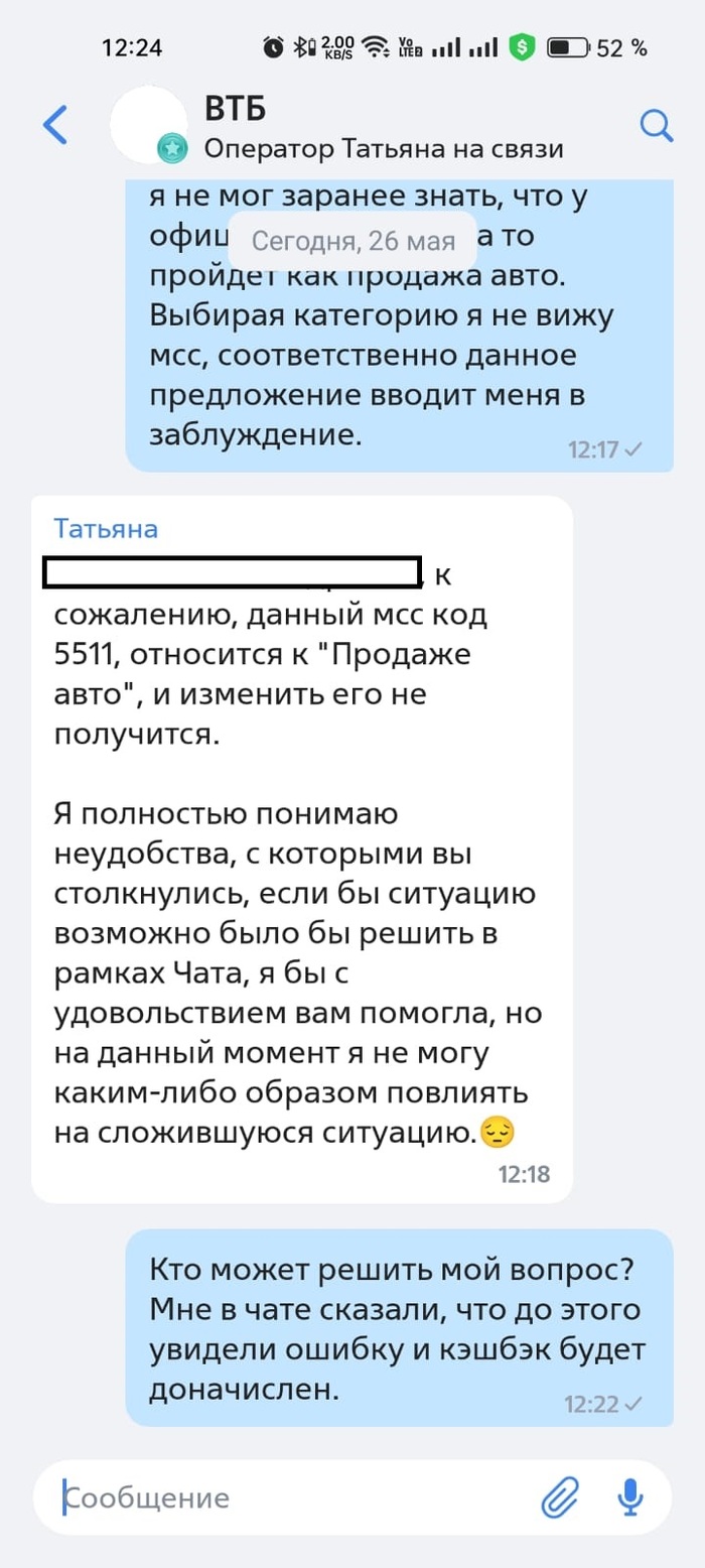Сегодня удостоверился, что ничего мне не начислили и решил снова обратиться в поддержку. Ответ ожидаемо: "Извините, MCC 5511 не входит в категорию. Мы ничего сделать не можем".