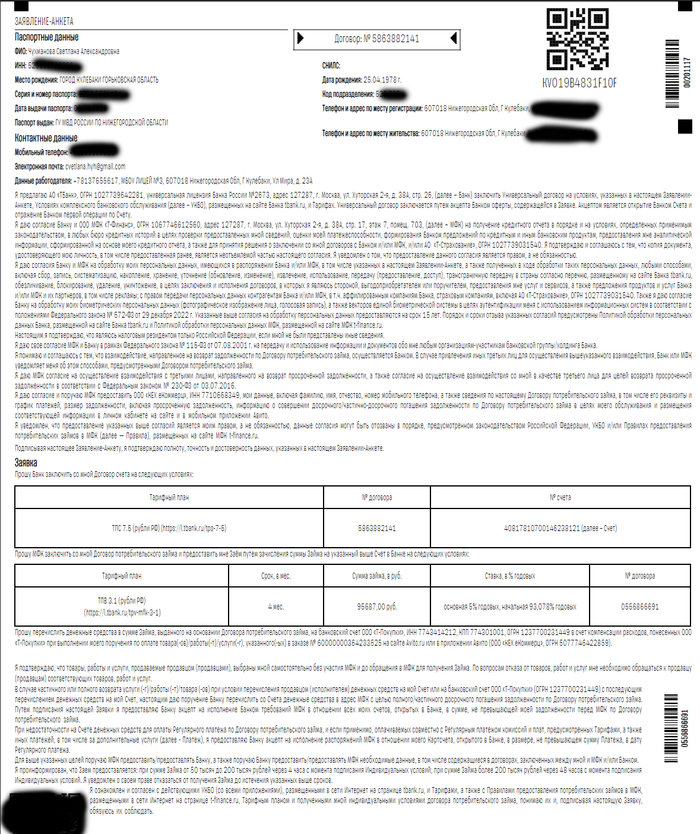 Суть ситуации: Ночью, 23.12.2025, в 01:00 ночи (время, когда нормальные люди спят) на имя моей сестры в Т-Финанс оформляется кредит на 95 687 рублей.