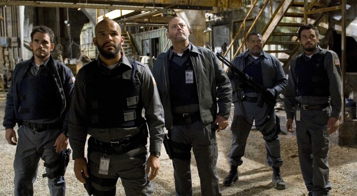Сегодняшние именинники Жан Рено и Лоуренс Фишбёрн в фильме "Инкассатор" (2009)