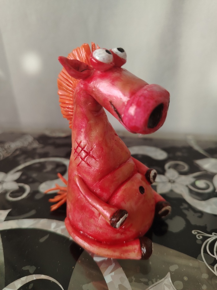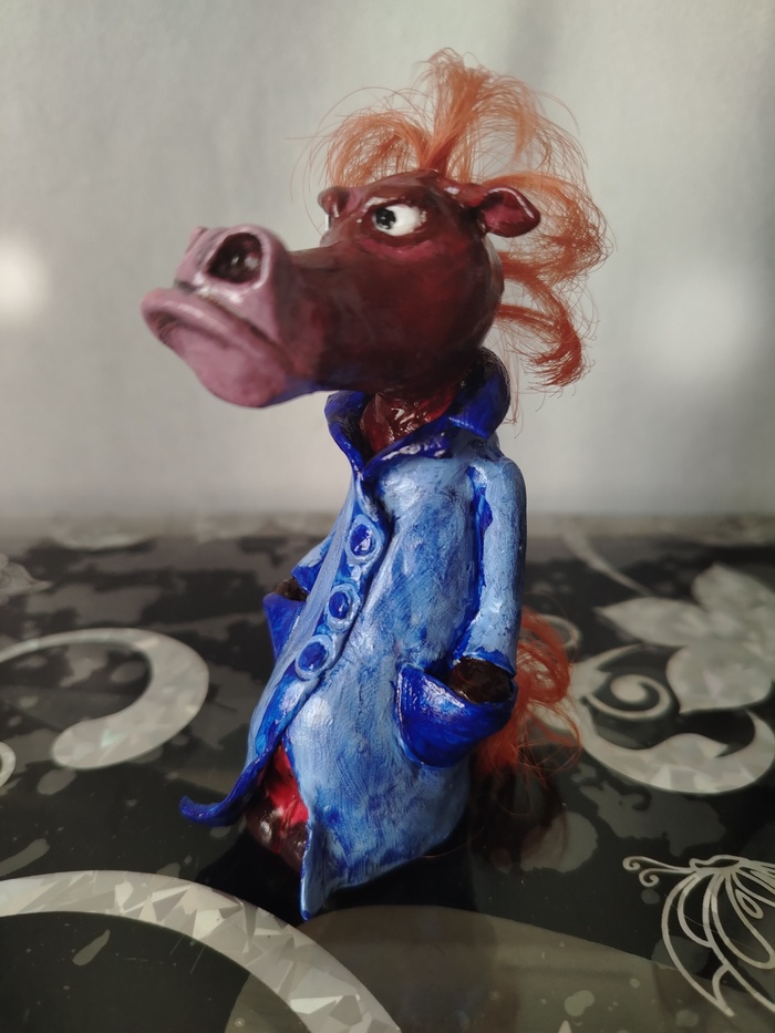Все фигурки маленькие, высотой 10-12 см, полимерная глина, роспись акриловыми красками, хвост и грива из каких то волос для кукол, купленных на Маркетплейсе.