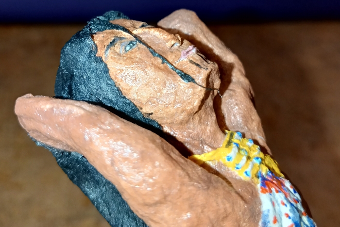 Эта работа особенно значима для меня тем, что первая такого масштаба из объемных картин(есть ещё скульптура, но про неё как-нибудь напишу отдельно) и нарисована без эскиза, сразу пластиком, и первая на такой на классический сюжет. Я очень рада, что так сразу удалось с ней поучаствовать в выставке.
