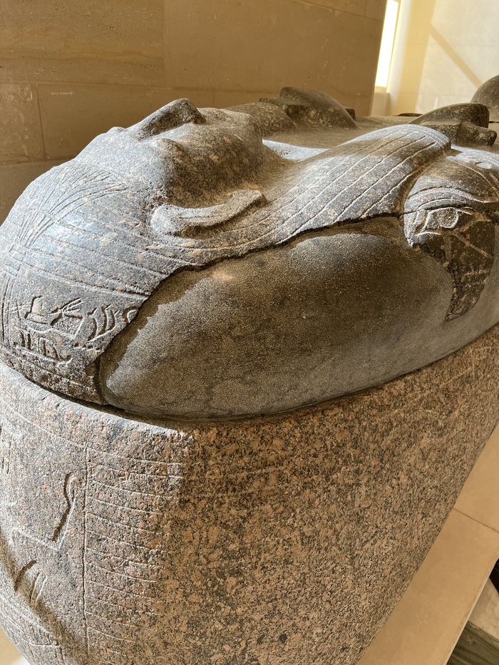 Побывал на днях в Лувре. Увидел интересный саркофаг, он как будто сверху был покрыт каким-то слоем отделки и часть ее облупилась. На вид все как единое целое. Может кто-то может объяснить как это так сделано?