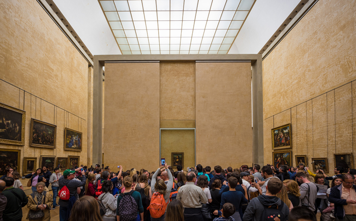 Как это ни странно, но легендой «Мона Лиза» стала всего чуть больше века назад. Каждый, кто был в Лувре, наверняка помнит ажиотаж вокруг зала, где находится картина Леонардо. Тысячи людей жаждут хоть мельком, через плечи других посетителей, увидеть эту небольшую и не блистающую красками картину, закрытую пуленепробиваемым стеклом.