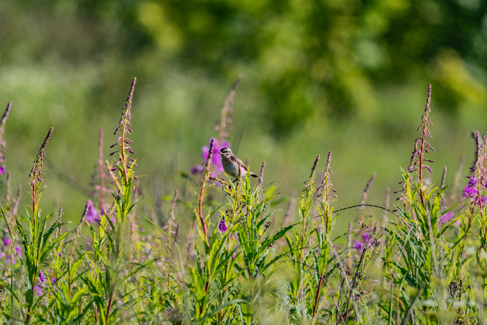 Самка лугового чекана поймала какую-то мошку. Наверное поделиться с детворой.